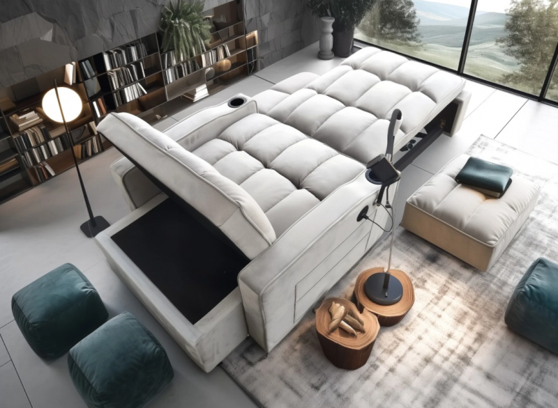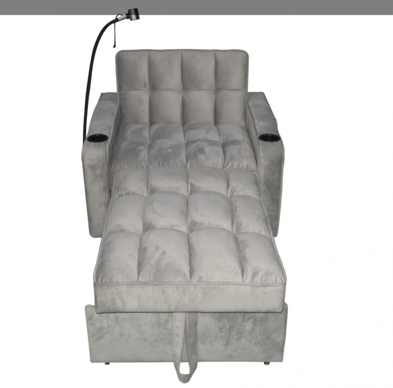Ez a szürke fotelágy multifunkciós kényelem egy helyen! Pohártartók, zsebek, flexibilis telefontartó és töltő gondoskodnak róla, hogy minden kéznél legyen, amire szükség lehet a tökéletes kikapcsolódáshoz. A 3 állásban állítható háttámla és az ajándék párna pedig még komfortosabbá teszik a pihenést.